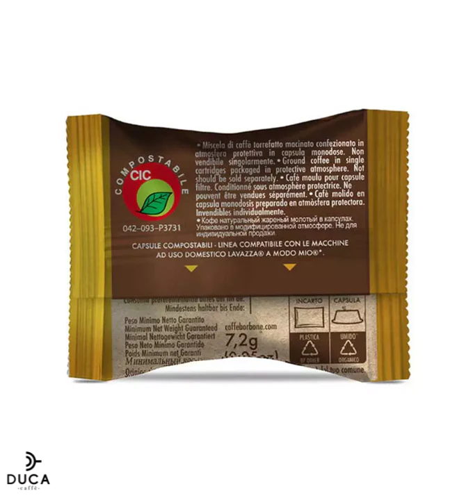 Le Capsule compatibili Lavazza A Modo Mio® Caffè Borbone miscela oro sono perfette per per chi non sa rinunciare ai sapori tradizionali del classico e inimitabile espresso napoletano, 70% Arabica 30% Robusta dal gusto Dolce e piacevole e dalla consistenza cremosa.