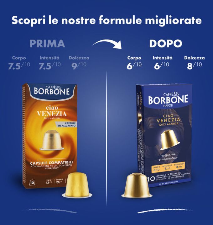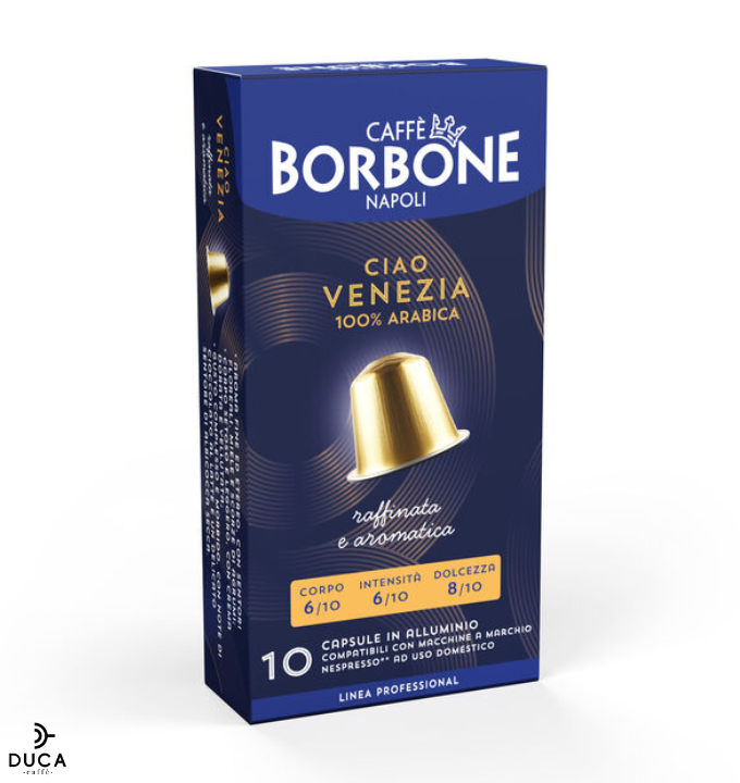 Capsule Borbone  miscela Ciao Venezia compatibili Nespresso* in Alluminio. Prova le nuove capsule Borbone in alluminio compatibili con macchine Nespresso. Miscela Ciao Venezia, Miscela dolce e Morbida Arabica